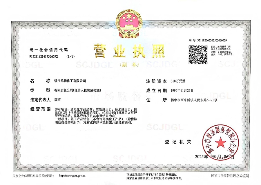 Copyright(C)2025, Zhenjiang Yueyang Chemical Co., Ltd. All Rights Reserved. Supported by Sunsirs ChemNet Toocle Copyright Notice